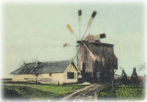 Dřevěný větrný mlýn stál původně ve Stěžerách. Roku 1787 byl postaven v Praskačce na nevysokém návrší. V roce 1803 byl znovu obnoven, patrně po předchozím požáru. Z katastrální mapy r. 1840 je patrno, že mlýn stál ve vzdálenosti asi 220 m na sever od kostela v Praskačce, v poloze "Pod větrním mlejnemm před příkopem".